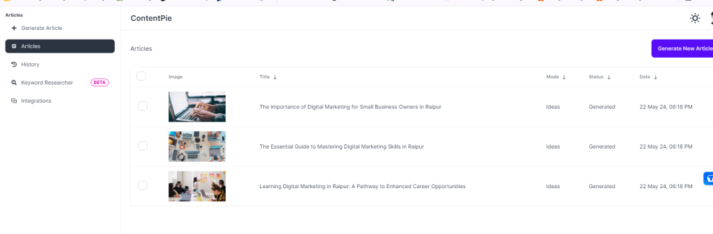 ContentPie allows for the bulk creation of articles, which is particularly beneficial for businesses looking to scale their content marketing efforts. This feature enables users to generate multiple articles simultaneously, saving considerable time and effort.